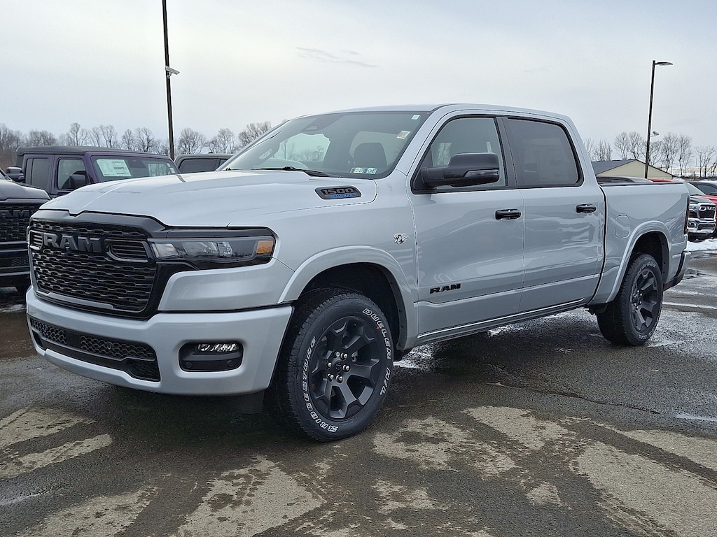 Introducing the 2026 Ram 1500 Big Horn/Lone Star, a perfect blend of power, style, and capability. Dressed in a striking Silver Zenith exterior and complemented by a sophisticated black interior, this truck is designed to make a lasting impression. Under the hood, it boasts a formidable HEMI 5.7L V8 Multi-Displacement VVT eTorque engine, delivering robust performance and exceptional towing capabilities for all your adventures, whether on the job site or off the beaten path. The Big Horn/Lone Star trim elevates your driving experience with advanced safety features, a spacious cabin filled with premium materials, and cutting-edge technology. Enjoy seamless connectivity with the latest infotainment system, providing you with all the tools you need for a modern lifestyle. With its rugged design and impressive capabilities, the 2026 Ram 1500 Big Horn/Lone Star is not just a truck; it's a statement. Whether you're navigating city streets or tackling tough terrains, this vehicle combines functionality with luxury for a driving experience unlike any other. Don't miss your chance to own this exceptional truck-experience the thrill today!